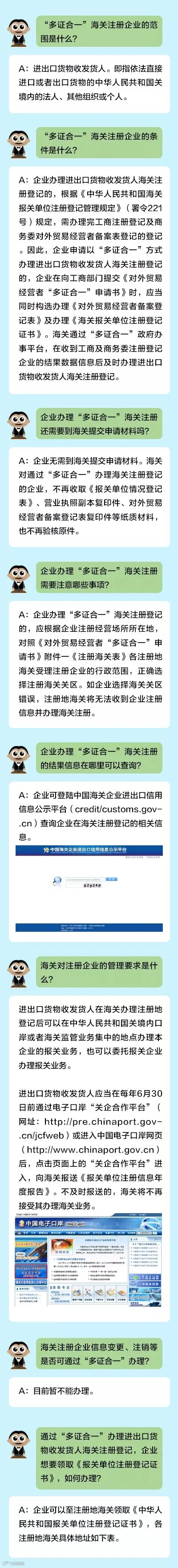 今年10月起,上海海关在海关总署的支持下将《海关报关单位注册登记证书》纳入“多证合一”,实现与工商营业执照的整合。在原有的基础上进一步深化商事登记制度改革,服务各类市场主体转型发展。