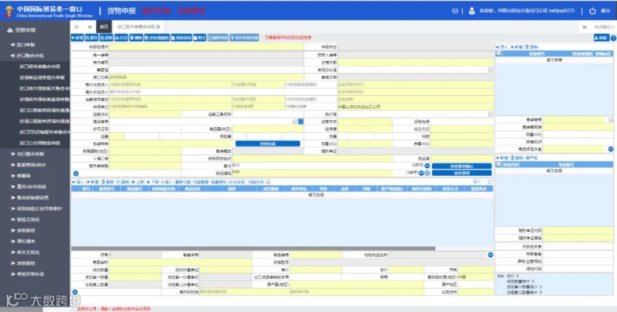 选择“货物申报”栏下“进口整合申报”的“进口报关单整合申报”。