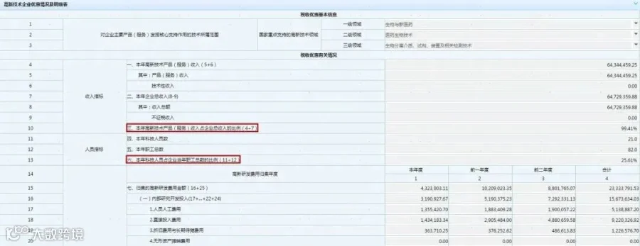 高新技术企业无论是否享受高企优惠,在资格有效期内均需填报《高新技术企业优惠情况及明细表》(A107041)。填报时,重点关注本年高新技术产品(服务)收入占企业总收入的比例、本年科技人员占企业当年职工总数的比例、三年研发费用占销售(营业)收入的比例,是否准确填报。需要提醒的是,税务部门在日常管理过程中发现高新技术企业在认定过程中或享受优惠期间不符合认定条件的,会提请认定机构复核。