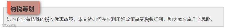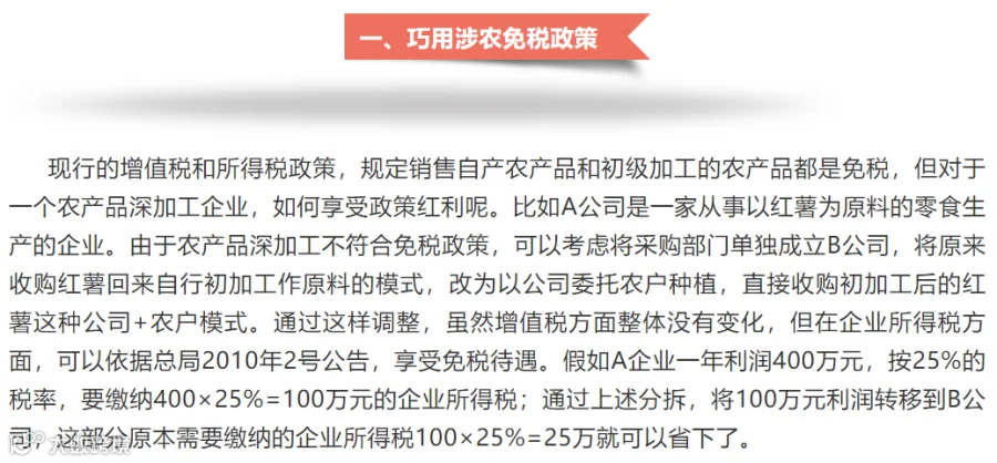 农业涉税筹划 I 涉农企业利用税收优惠政策纳税筹划的思路