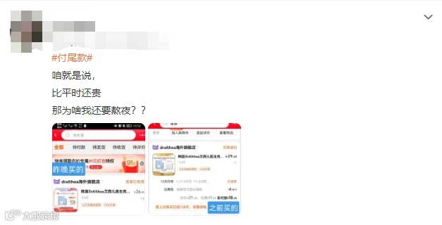 “付尾款”的话题也直接冲上热搜榜第一,各位买家疯狂吐槽控制不住双手的自己以及急于发货的商家。