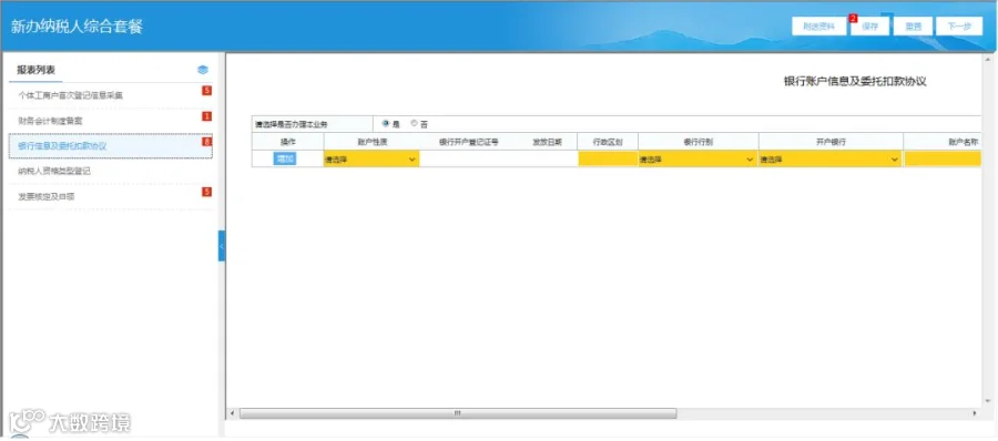 录完银行账户信息及委托扣款协议后,点击左侧的纳税人资格类型登记菜单,进入纳税人资格类型登记录入页面。