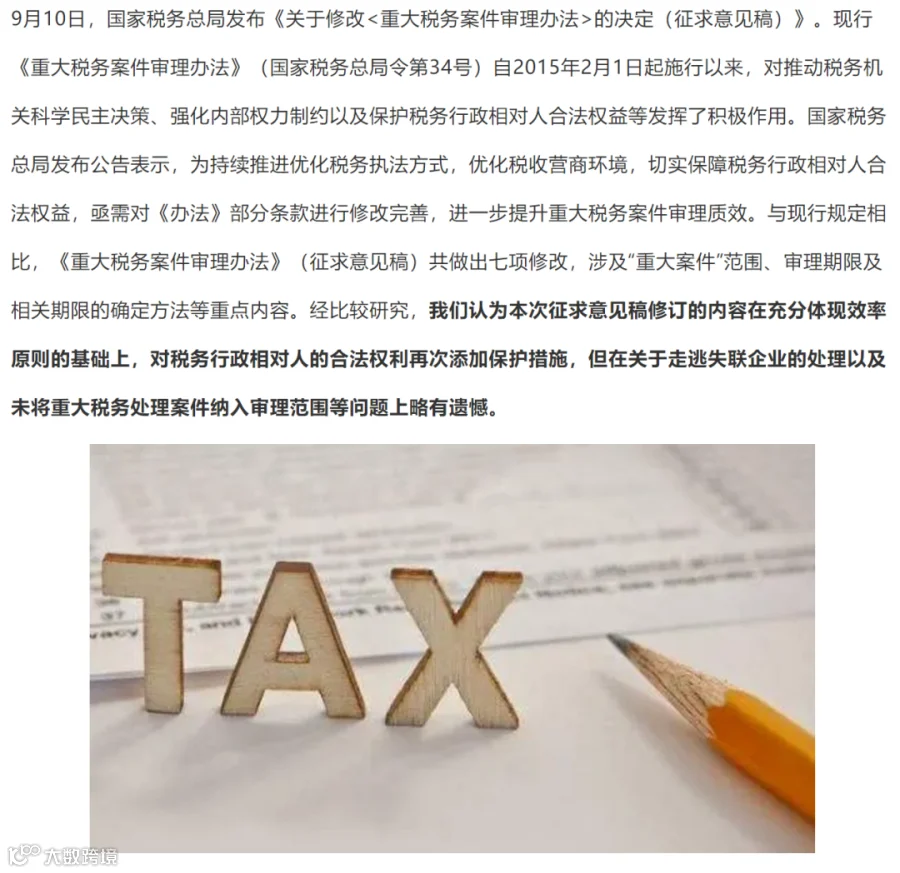 税务案件 |重大税务案件审理办法:7项修改,3大变化