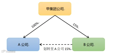 甲集团公司不确认股权转让所得,A公司取得B公司的股权的计税基础按照原计税基础确认。依据国家税务总局2015年第40号公告的规定,100%直接控制的母子公司之间,母公司向子公司按账面净值划转其持有的股权或资产,母公司没有获得任何股权或非股权支付。母公司按冲减实收资本(包括资本公积,下同)处理,子公司按接受投资处理。划转完成日起连续12个月内不改变被划转股权原来实质性经营活动,并按照2015年第40号公告的规定进行备案,在这种情况下划出方和划入方均不确认转让所得,不需要缴纳企业所得税。