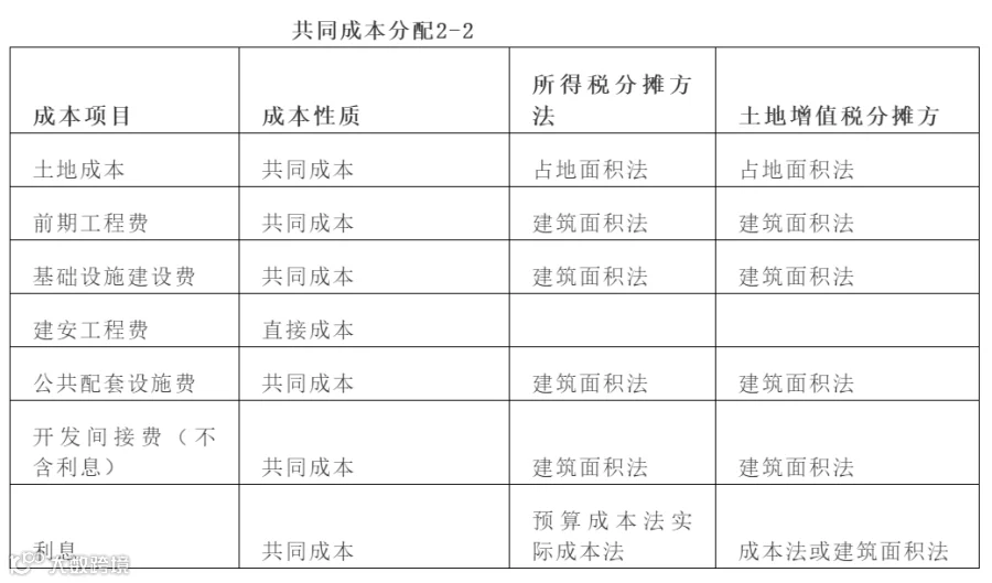 注:根据产权、盈利,转移情况进行成本归集,建成后产权属于全体业主所有的,其成本、费用可以扣除;建成后无偿移交给政府、公用事业单位用于非营利性社会公共事业的,其成本、费用可以扣除;建成后有偿转让的,应计算收入,并准予扣除成本、费用。