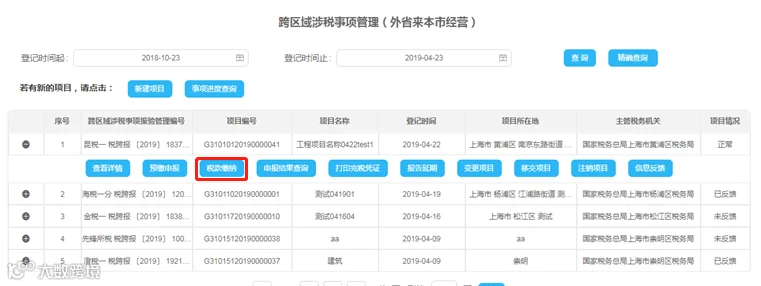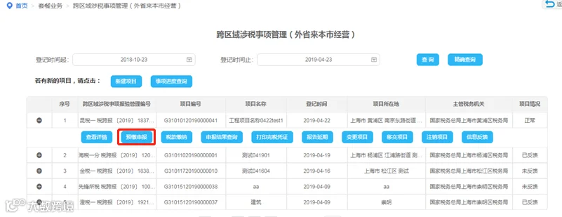 跨区域涉税事项套餐上线后,外省市企业的存量项目因无法在套餐内显示,导致无法进行预缴申报等事项的申请。因此,在电子税务局套餐中开发了“老项目绑定”功能,自然人登录电子税务局后,进入跨区域涉税事项套餐(外省市来本市)模块,可点击“项目绑定”,输入税号,即可查询出该企业在上海市做过报验登记的项目,确认绑定后,可对该项目进行管理。