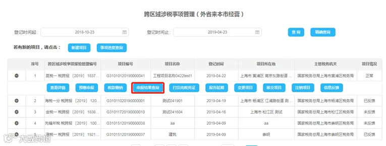 进行“跨区域涉税事项信息反馈”后,项目情况由“未反馈”状态变更为“已反馈”状态,功能按钮也会进行相应变更(查看详情、打印完税凭证、申报结果查询)。