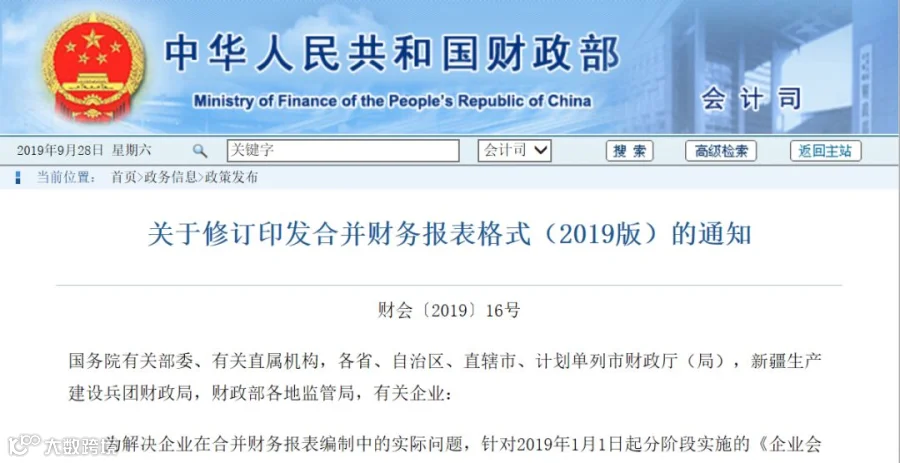 财政部发布了《关于修订印发合并财务报表格式(2019版)的通知 》,现行的财务报表格式进行较大的修订。
