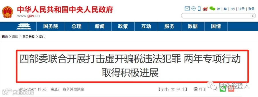 2、税务总局、公安部、海关总署、中国人民银行在内的四部委共同部署开展打击虚开骗税违法犯罪两年专项行动,重点打击没有实际经营业务只为虚开发票的“假企业”、没有实际出口只为骗取退税的“假出口”。