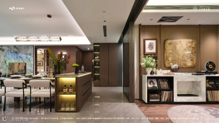 触觉维度:主入口取艺“梵克式”灵感底蕴,地下车库引入“星空穹顶”艺术,立面采用“高技派”工艺工法,溪谷悦心生活馆营造雅奢空间美学,“阿勒泰”疗愈园林内植入约9米飞瀑与约1500㎡银杏林,让感官美学贯穿生活场景。