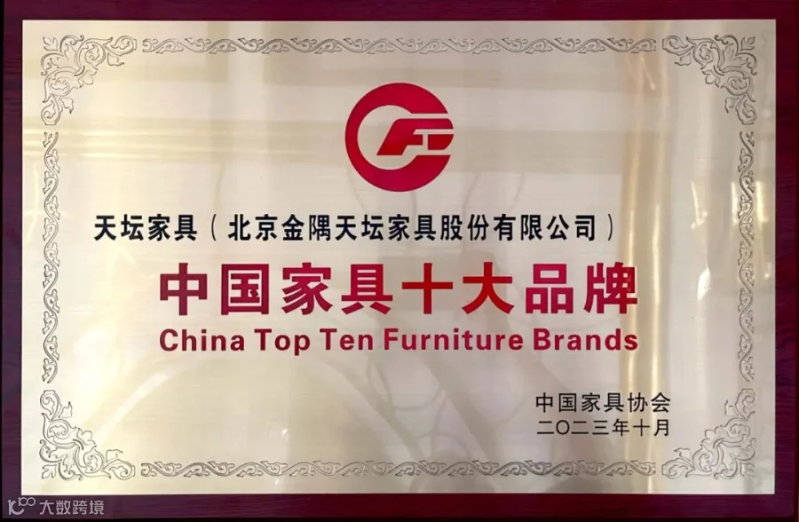 2023年10月26日,金隅天坛家具公司荣获中国家具协会颁发的“中国家具十大品牌”称号。