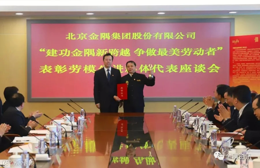 “五一”小长假前夕(4月26日),金隅集团“建功金隅新跨越 争做最美劳动者”表彰劳模先进群体代表座谈会在北京环球贸易中心集团总部召开。