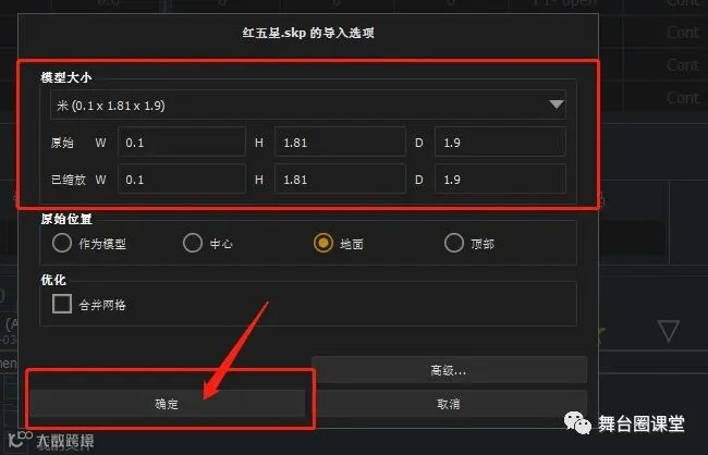 8、检查模型尺寸数据,无误后点击确定。