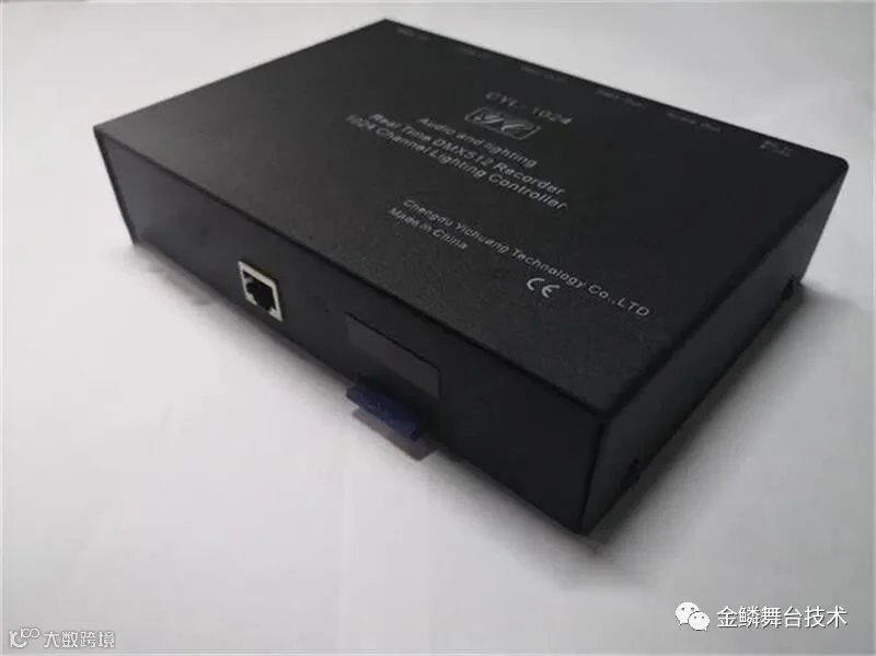 金鳞1024个DMX512通道专业舞台灯光声光同步器,支持所有DMX512控台,将音乐放在SD卡里,并将控台信号输入同步器,录制时,同步记录控台和音乐信号实现声光同步,一旦记录完成,重放时,只需按下播放键选择音乐即可实现声光同步播放!是专业舞台灯光师声光同步的好工具!适合各种演出活动使用。