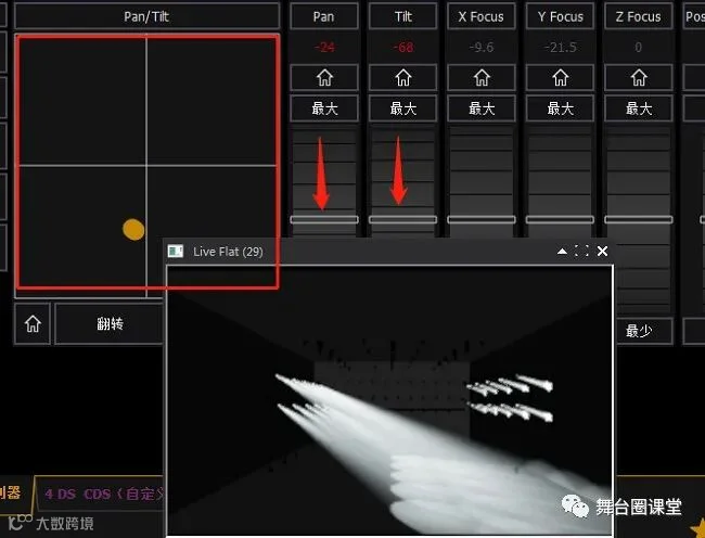1、在现场会有两侧或地上两边放置的灯位(图1)在编程时会非常的不方便。反向灯具水平垂直就能解决这个问题,也有助于提升我们现场的编程效率。