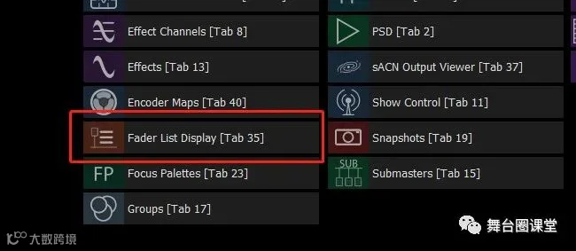 3、打开 Fader List Display 推杆列表显示。