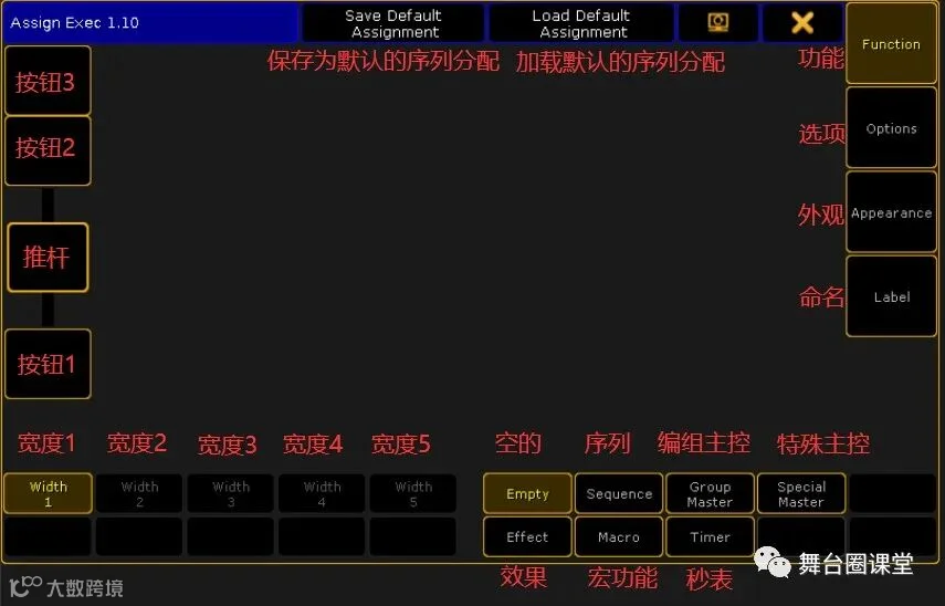 在grandMA2控台中,有小伙伴提问按钮执行器分配功能,遇到不认识的按钮关键词怎么办?今天就分享给大家,分配按钮执行器窗口中英文翻译!