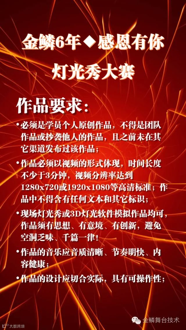 亲爱的金鳞学员和VIP会员,如果你仍然坚守着当年的初心,一直热爱着舞台灯光,立志从幕后走向台前!那么,你还在等什么?来参赛吧!让我们看到你的灵感闪起来、你的思想转起来、你的血液燥起来!!!