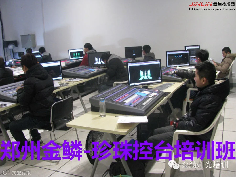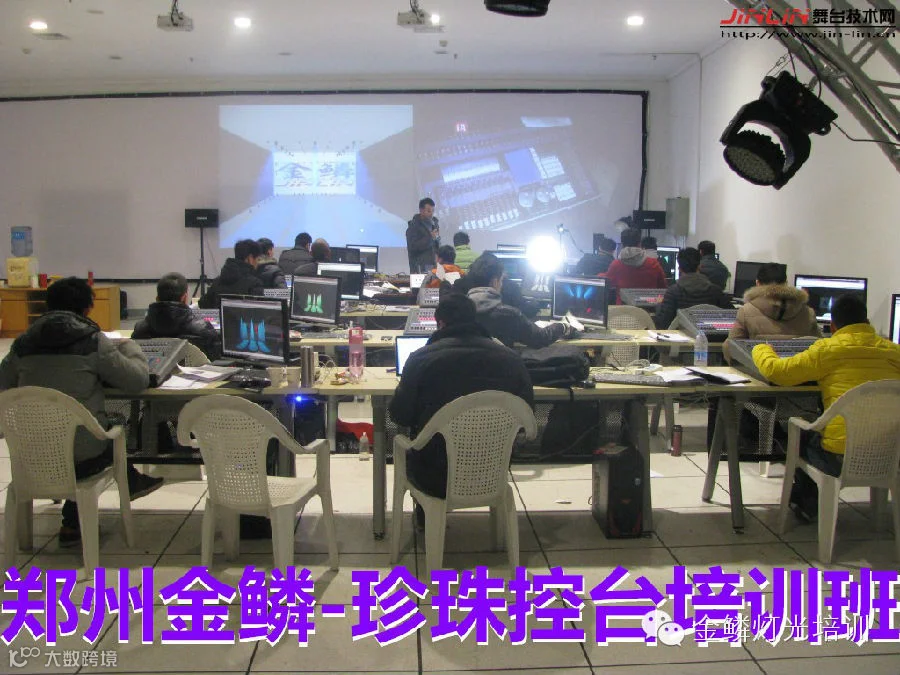 郑州金鳞推出的精品灯光培训课程,乔迁新址后培训大班, 专业老师授课,两台投影机分别展示控台操作和灯光效果,另外配置多张珍珠控台,基本人手一张,集中讲解,大量练习与操作,结合实物灯光设备操作,真正让你一次性学精通珍珠系列控台。