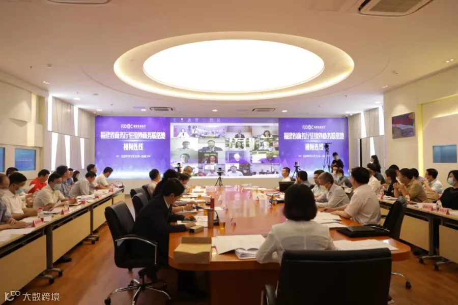 福建省人民政府副省长郭宁宁出席会议,省商务厅党组书记、厅长吴南翔主持会议。福建省商务厅在境外设立的42家商务联络处中,除时差关系和部分不具备视频连线条件外,共有28家境外商务联络处参与视频连线活动。