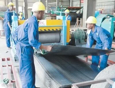 乌干达天唐工业园内的钢材厂,当地工人正在车间内工作。