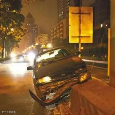 ●2012年4月5日,一辆的士由于雨天路滑,撞上天桥第二个桥墩反弹撞上路牌,车头严重变形。