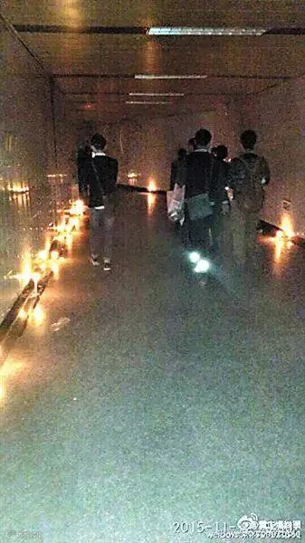 前晚,地下通道烛光点点。网友供图