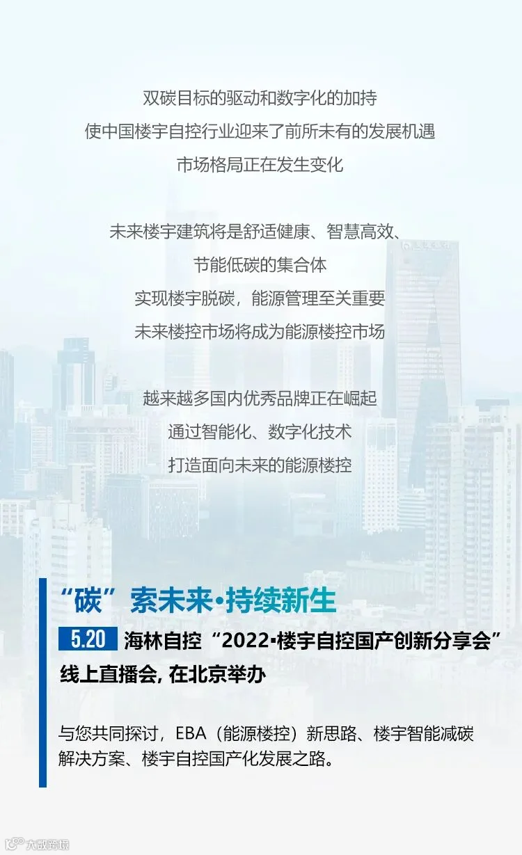 碳”索未来·持续新生,2022 楼宇自控国产创新分享会,5.20见!
