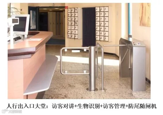 小区主、次人行出入口设置管理大堂,设置访客对讲、生物识别及防尾随(建议)等智能化系统设备,对进出人员进行有效管理。