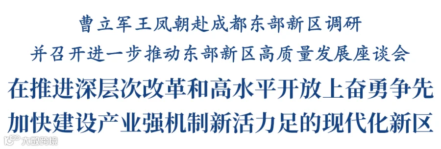 9月15日,省委常委、市委书记曹立军,市委副书记、市长王凤朝赴成都东部新区调研并召开进一步推动东部新区高质量发展座谈会。曹立军强调,东部新区要深入学习贯彻习近平总书记对四川工作系列重要指示精神和中央城市工作会议精神,全面落实党中央和省委、市委决策部署,认真践行人民城市理念,突出高质量发展主题、内涵式发展主线,在推进深层次改革和高水平开放上奋勇争先,加快建设产业强、机制新、活力足的现代化新区。