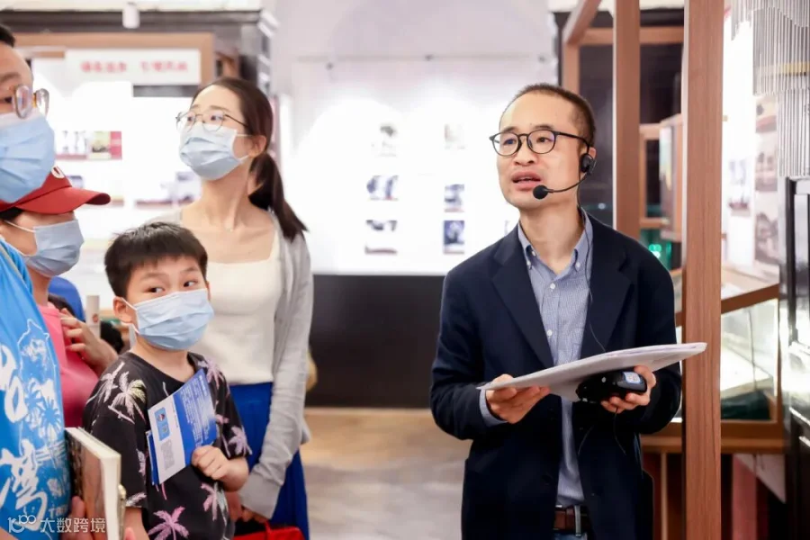 活动上,肖可霄老师带领着读者参观了博物馆一楼孔雀厅,讲述百年老建筑的辉煌历史,结合中证博的“百年潮 绽新生——浦江历史文化专题展览”,肖老师从初建搬迁、建筑沿革、历史发展、功能转变和未来展望五个篇章,介绍了浦江饭店的风采。