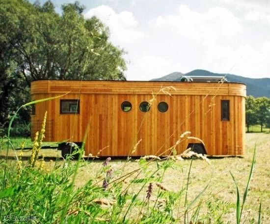 Wohnwagon是来自奥地利的一款拖车型野营房屋,主打环保风格,所以外层全部采用了木质结构。另外,它还集成了太阳能、屋顶绿化、污水再生利用系统,可以说是一款从里到外都非常绿色的小屋。