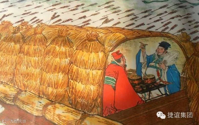 曹操脑子没进水,他真的借给诸葛亮10万支箭。在一个大雾蒙蒙的早上,诸葛亮派出几千艘木船,船上扎满了稻草,佯装攻打曹营的样子。曹操一看诸葛亮你真的要杀我呀,我先用箭射死你,命令所有的弓箭手万箭齐发,结果箭一支支射到了船的稻草上。不到一个时辰,诸葛亮就收到曹操送来的10多万支箭。