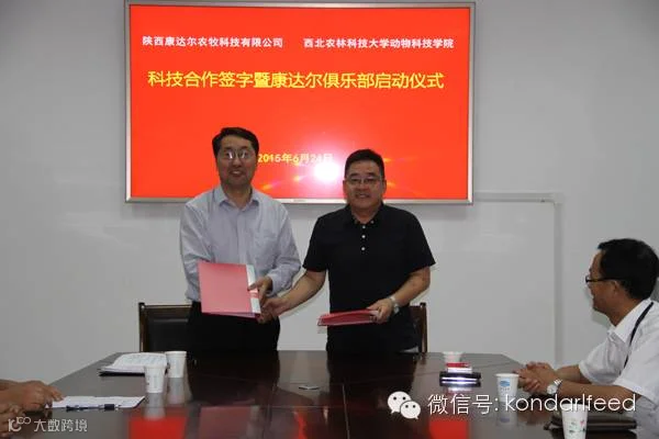 6月24日上午,我公司与西北农林科技大学动物科学院科技合作暨康达尔俱乐部启动仪式。集团总裁助理、陕西康达尔农牧董事长兼总经理刘玉瑞,陕西康达尔农牧企管部部长刘洋,陕西康达尔农牧副总经理、宝鸡公司总经理张明乐,动物科学院姚军虎院长、王力副院长、康达尔俱乐部负责人潘传英副教授、部分青年教师以及我公司各部门代表参加会议。王力副院长主持会议。