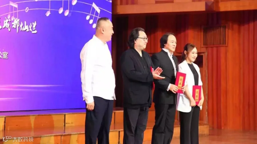 在现场,成都演艺集团董事长、成都女声室内合唱团团长业丹先生向新聘任的艺术顾问李西林先生、声乐指导唐竹雅先生、艺术总监朱曦先生、常任指挥柳秀妍女士颁发聘书。