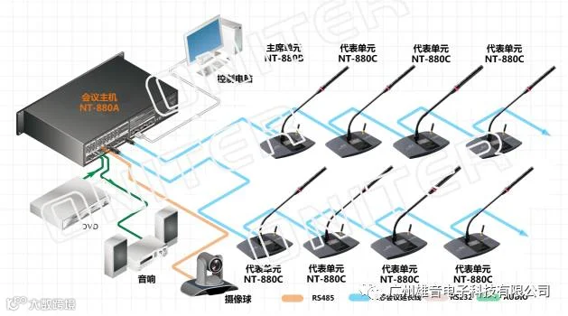 其特性在于它对于所有类型的会议都提供灵活的管理,具有多功能、高音质、数据传送保密等优点,可以对会议的全过程实行全面的控制;