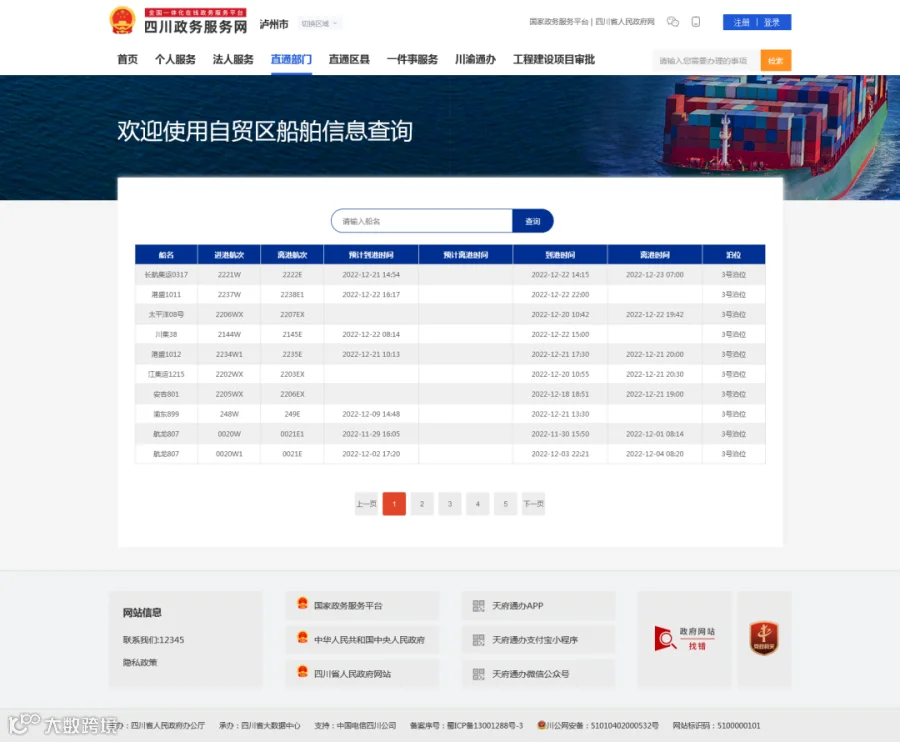 10月中旬,完成四川政务网和天府通办APP “自贸区川南临港片区船舶作业查询”“自贸区川南临港片区班列查询”等功能优化,实现了自贸区口岸数据在PC端和移动端的查询功能和自贸区数据与政务外网大数据中心互联互通,为自贸区信息化建设在数据共享、系统开发、网站应用等方面提供了技术服务保障。