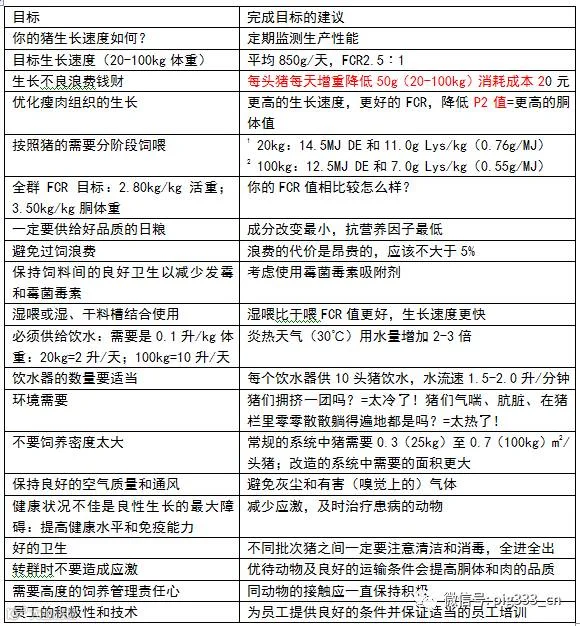 表10. 优化生长育肥猪生产性能的建议