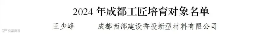 2024年,成都市总工会组织开展了成都工匠培育对象遴选工作,经申报推荐、资格审核、现场遴选、综合审查、市产业工人队伍建设改革工作机构审核、社会公示等程序,确定606名职工作为2024年成都工匠培育对象。中建新材王少峰成功入选。