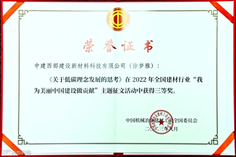 据悉,该征文比赛由中国机械冶金建材工会全国委员会举办,旨在推动行业绿色发展,引领建材行业企业和广大职工积极投身美丽中国建设,征文主题涵盖关于建材行业企业加快发展方式绿色转型,推动经济社会发展绿色化、低碳化的做法和成效,关于建材行业企业工会围绕生态文明建设开展宣传引领、“五小”等群众性创新活动、主题劳动和技能竞赛等的做法和成效,关于建材行业职工群众积极贯彻绿色发展理念、践行绿色低碳生产方式和生活方式的做法和成效等内容。公司各级工会积极动员,广泛组织,职工参与度较高,营造了良好的绿色低碳的学习氛围。
