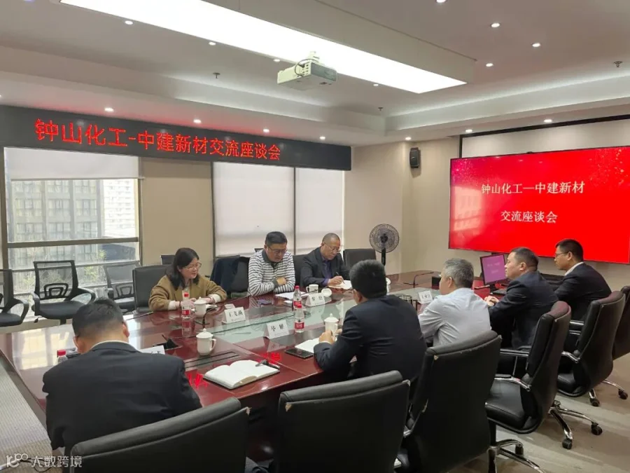 黎松对福建钟山化工有限公司的业务范围、研发水平及生产能力进行了详细介绍,表达了进一步深化合作关系的意愿。陈赤介绍了中建新材的市场布局、业务规模等基本情况。随后,双方就目前合作中存在的问题进行了讨论,并在促进产品研发、建立共赢关系等方面达成共识。