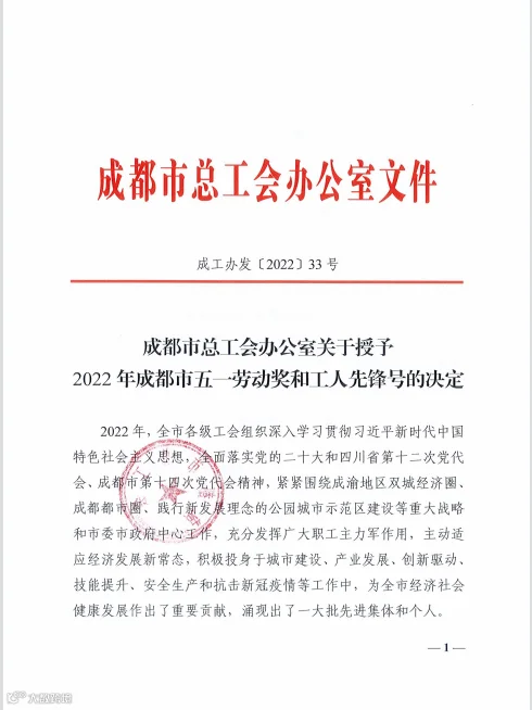 弘扬劳动精神,发挥模范作用。近日,成都市总工会发布《关于授予2022年成都市五一劳动奖和工人先锋号的决定》,表彰在城市建设、产业发展、创新驱动、技能提升、安全生产和抗击新冠疫情等工作中,涌现出的先进集体和个人。中建西部建设新材料科技有限公司(以下简称“中建新材”)党委副书记、纪委书记、工会主席熊竺,技术质量部副经理王少峰荣获“成都市五一劳动奖章”。