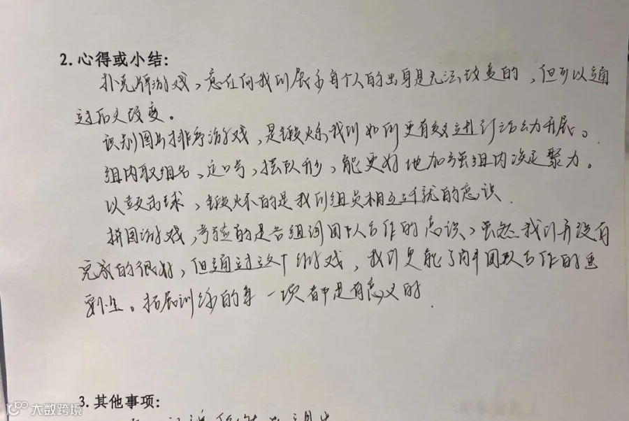 在活动后总结中,大家纷纷表示,通过这些游戏充分认识到了团队中人与人之间的有效沟通以及团队管理艺术,学到了换位思考、合理组织、团队协作等方面的宝贵知识。