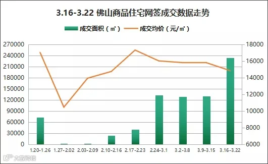 上周佛山全市一手住宅成交达到2124套,合计23.37万㎡,环比上涨77.30%;不仅成交量大幅上涨,在新货预售供应上同样有明显上涨,上周共有7个项目拿取预售证,遍及佛山五区,合计新增1344套、14.36万㎡。