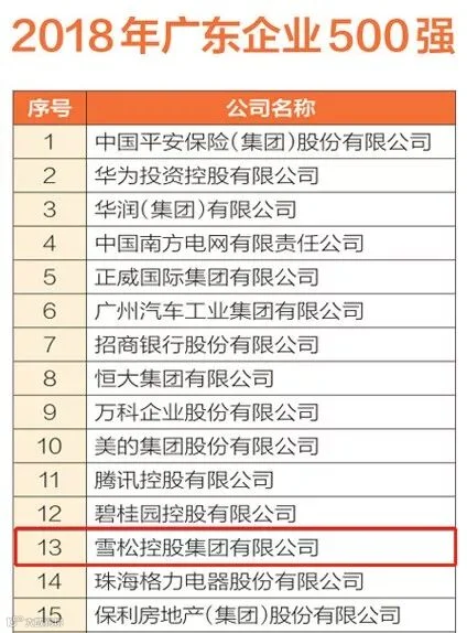 8月9日,由广东省企业联合会、广东省企业家协会主办的“2018年广东企业500强、优秀自主品牌发布大会”在广州举行。本届大会以“引领高质量发展,大企业的时代担当”为主题,发布了“2018年广东企业500强” “广东民营企业百强”和“广东服务业百强”等榜单,雪松控股分列第13位、第7位和第8位。