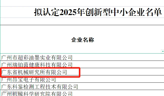 近日,广州市工业和信息化局发布了拟通过评价(复核)的2025年创新型中小企业名单。省机械所凭借出色的科技创新能力,顺利通过本次复核。