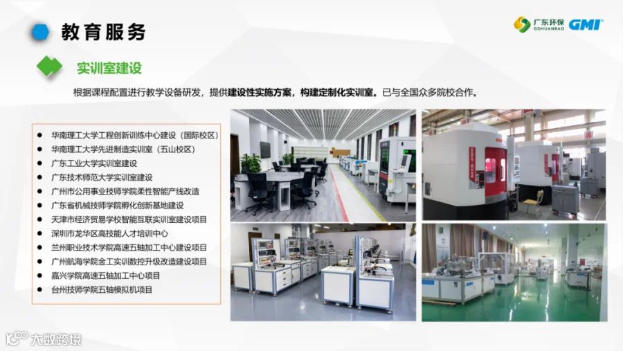 打造产教评融合型生态组织。聚焦教育领域,为高校和职业院校提供教学实训装备、实训室建设、产学研合作、师资培训、专业建设、课程资源开发、竞赛申办与辅导、创新创业,同时向社会及企业、个人提供职业技能培训、考核、等级认定服务。