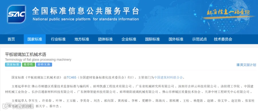 近日,国家市场监督管理总局、国家标准化管理委员会批准《平板玻璃加工机械术语》国家标准正式发布,将于2025年5月1日起实施。作为主要起草单位之一,省机械所全程参与了此次标准的编制。