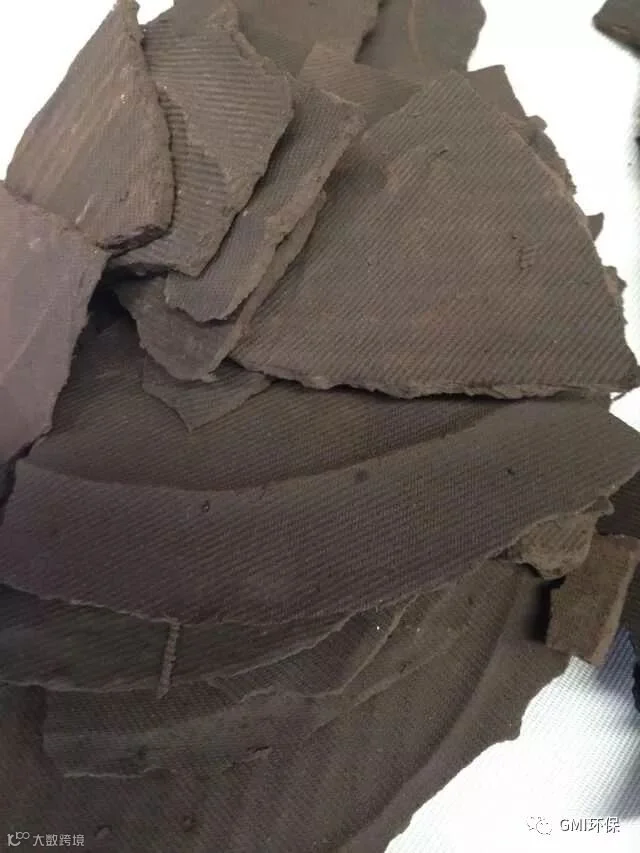 利用高压深度脱水工作站处理市政泥的工艺是:经处理后的污泥,浓缩至固含量达到2%~10%的泥浆。由于这种污泥加了大量的絮凝剂,因此污泥本身的滤水性很差,在高压下易成夹心饼,中间压不干,为此需要作调理处理。经调理后,再经泥浆泵打入本机,然后经(6~10)MPa的工作压力,将污泥压干至含水率35%~48%,呈硬质块状。处理效果如图4所示。