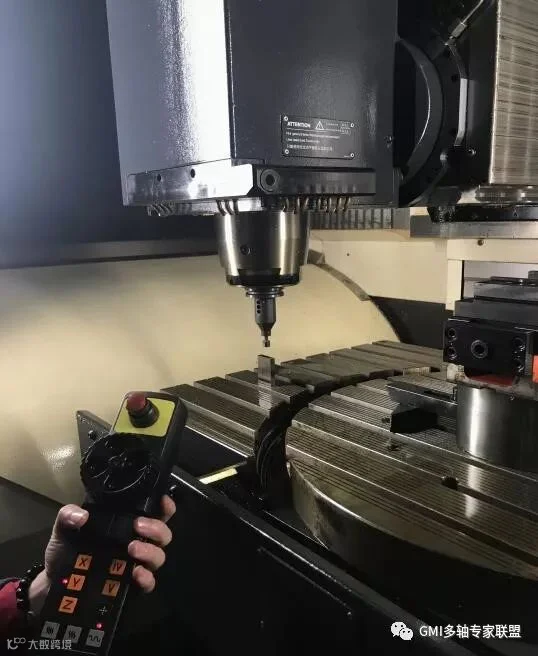 3.然后找到我们的标准量块通过手轮模式与标准刀的底部接触到刚好的距离。